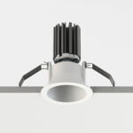 Apparecchi da incasso a sezione tonda fisso con posizione lampada arretrata antiabbagliamento. Disponibili con battuta o in versione incasso rasato. Corpo ottico realizzato in pressofusione di alluminio, ottica in finitura alluminio 99,9%. Grado di protezione IP20.