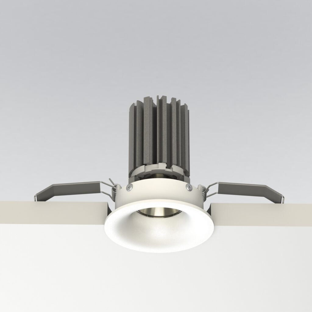 Apparecchi da incasso a sezione tonda fissi con posizione lampada arretrata antiabbagliamento. Disponibili con battuta o in versione incasso rasato con l’ausilio di apposito accessorio opzionale. Corpo ottico realizzato in pressofusione di alluminio, ottica in finitura alluminio 99,9%. Grado di protezione IP20/23. Disponibili anche con attacco GU10.