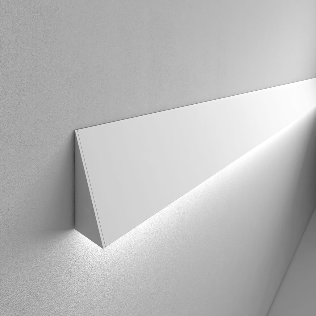 Apparecchi a parete per illuminazione diretta o indiretta, completi di sorgenti lineari LED. Da completare con alimentatore elettronico da installare remoto. Corpo in estruso di alluminio. Installazione possibile sia girato verso il basso, che girato verso l’alto. Completi di testate di chiusura laterali con sistema Light Proof , schermi diffondenti in PMMA opalino bianco e staffe di fissaggio. Grado di protezione IP40.