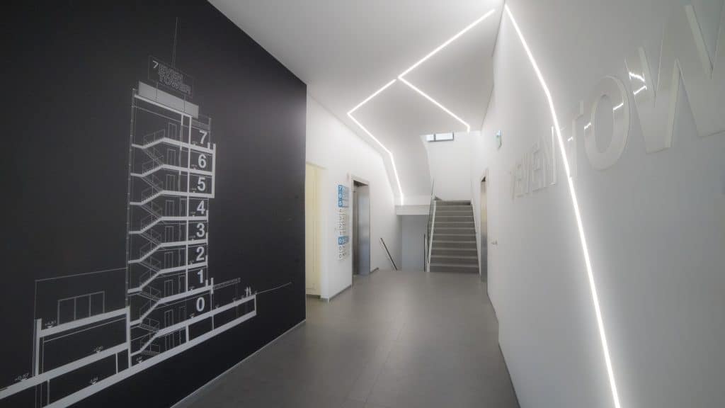Sistema modulare per illuminazione diretta, diffusa, composto da profili vuoti in estruso di alluminio verniciato o anodizzato disponibili in lunghezze predefinite o ordinabili a misura disponibili nelle versioni a parete, soffitto, sospensione, incasso rasato a scomparsa totale e da incasso in angoli parete interni o esterni. Testate di chiusura laterali con sistema Light Proof e di schermo diffondente in PC opalino bianco. Da integrare con sorgenti lineari LED. Da completare con staffe di fissaggio o cavi di sospensione. Grado di protezione IP40 o IP43 a seconda della zona d’installazione.