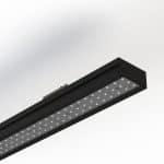 Collezione di apparecchi illuminanti lineari in estruso di alluminio 98mmx48mm. Possibilità di installazione a binario trifase elettrificato 230V o a sospensione con cavi a regolazione micrometrica, completo di bilanciatore orizzontale del prodotto. Finitura verniciatura a polvere. Ottiche ad alta efficienza professionale in policarbonato con diverse aperture di fascio. Grado di protezione IP40.