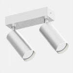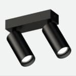 2 Proiettori orientabili Focus di dimensioni ridotte Ø 55 mm montati su base rettangolare equipaggiata con driver a bordo. Le versioni LED COB sono complete di sorgente ad alte prestazioni. LED COB 12W o 18W per il Ø55.