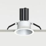Apparecchi da incasso a sezione tonda orientabile con posizione lampada arretrata antiabbagliamento. Disponibili con battuta o in versione incasso rasato. Corpo ottico realizzato in pressofusione di alluminio, ottica in finitura alluminio 99,9%. Grado di protezione IP20.