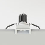 Apparecchi da incasso a sezione quadrata orientabile con posizione lampada arretrata antiabbagliamento. Disponibili con battuta o in versione incasso rasato. Corpo ottico realizzato in pressofusione di alluminio, ottica in finitura alluminio 99,9%. Grado di protezione IP20/IP23.