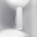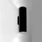 apparecchi di illuminazione da interni e esterni caratterizzati da una sezione tubolare in alluminio di diametro 90 mm. Versione a parete bi-emissione.