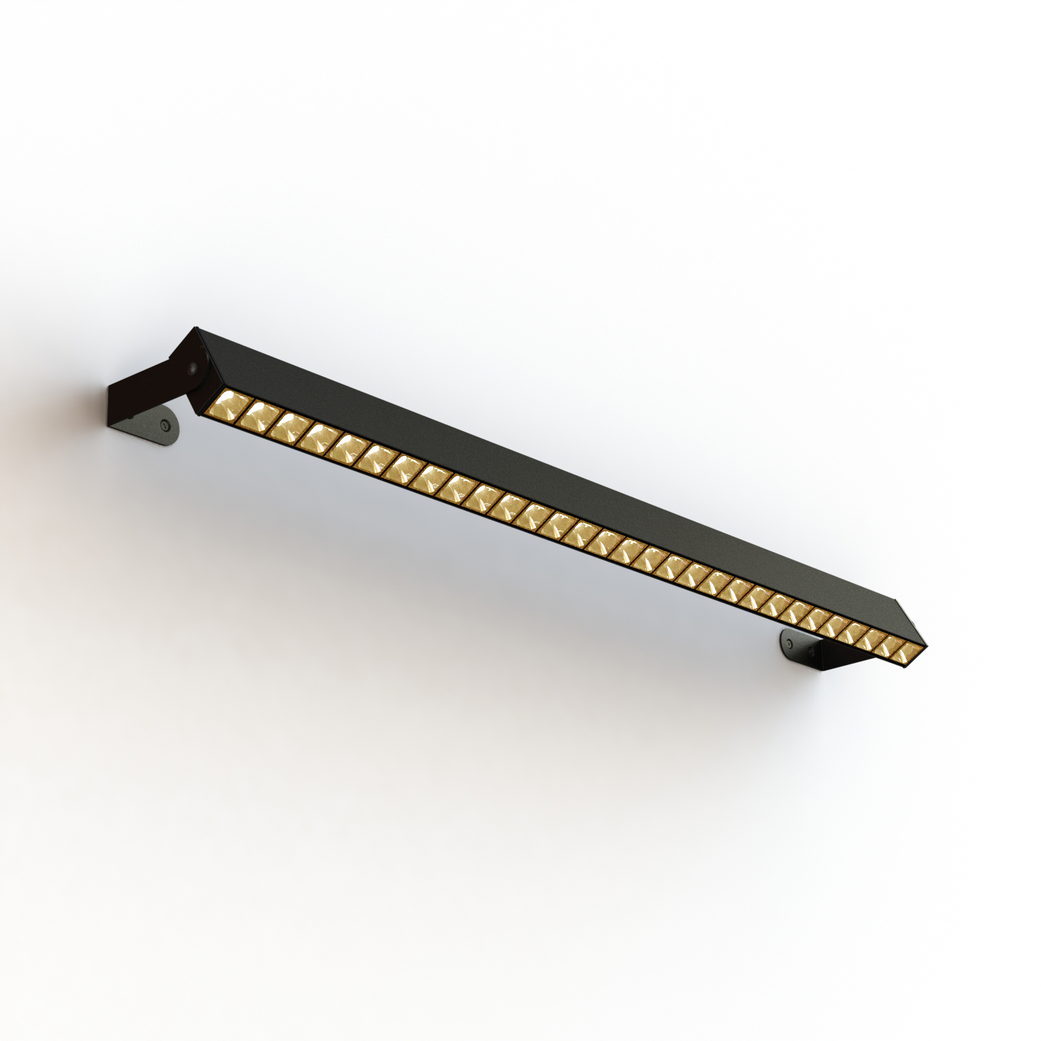 Apparecchio da esterno di misura 900 mm. E’ costituito da un profilo di estruso di alluminio rettangolare, corpo dell’apparecchio, al cui interno sono alloggiati in fila di 30 gruppi ottici – composti di LED professionale chip on board 2,2W , lente e housing antiabbagliamento UGR<14 - permettendo quindi di raggiungere flussi luminosi molto elevati. Ottiche spot, flood, wide e Asymmetric.… leggi tutto