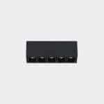 Proiettore compatto outdoor da parete/soffitto costituito da un profilo in estruso di alluminio rettangolare, all'interno del corpo dell’apparecchio sono alloggiati in fila una serie di gruppi ottici da 5 led chip on board, lente e housing antiabbagliamento UGR<14. Grado di protezione IP54.