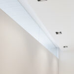 Apparecchio da incasso a parete e soffitto, fisso per sorgente LED integrata . Alimentazione remota disponibile come accessorio. Corpo e cornice di battuta super-slim larghezza 5 mm. in metallo verniciato. Installabile a cartongesso. Grado di protezione IP20/IP23.