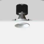Apparecchio da incasso indoor e outdoor per cartongesso con cornice, tonda, con ottica fissa per illuminazione d'accento. Sorgente luminosa in posizione arretrata antiabbagliamento. Con sorgente LED integrata con riflettore metallizzato in alluminio puro 99,9%. Corpo e gruppo ottico in alluminio verniciato. Alimentazione remota disponibile come accessorio. Grado di protezione IP20/IP54. Classe di isolamento III.