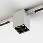 Collezione di apparecchi per un’illuminazione a binario 24V/48V. Apparecchi a luce diretta. Disponibili in versione da binario a soffitto o in versione per bianario da incasso per un'installazione filo muro. Corpo a sezione quadrata in estruso di alluminio in finitura verniciata. Grado di protezione IP20.