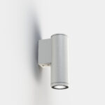 Apparecchi per esterni da parete per illuminazione diretta o diretta/indiretta, completi di sorgenti LED professionali o per lampade LED GU10 230V. Completi di gruppo di alimentazione. Corpo cilindrico in estruso di alluminio finitura verniciata. Completi di staffa per fissaggio a parete. Grado di protezione IP54.