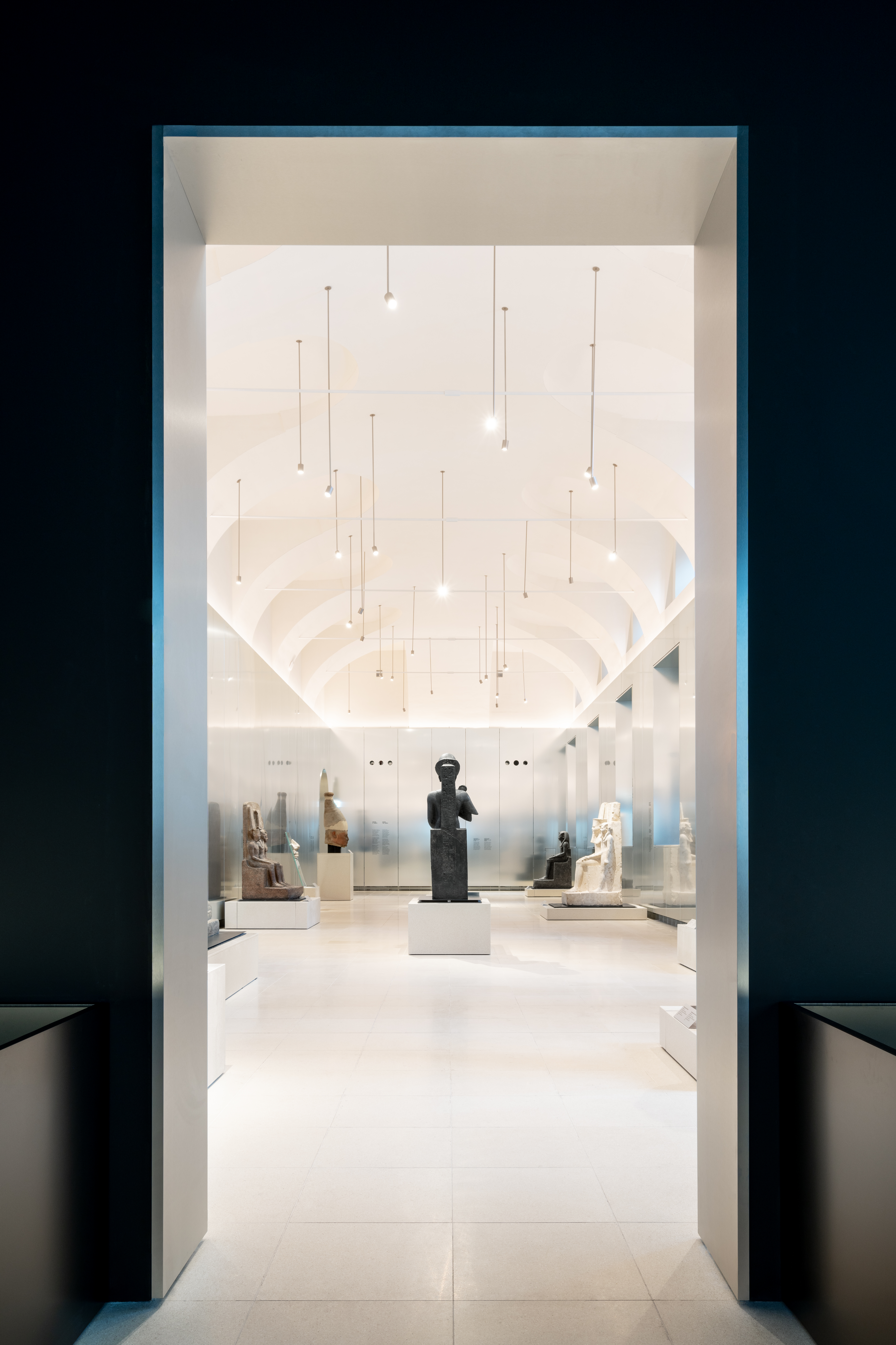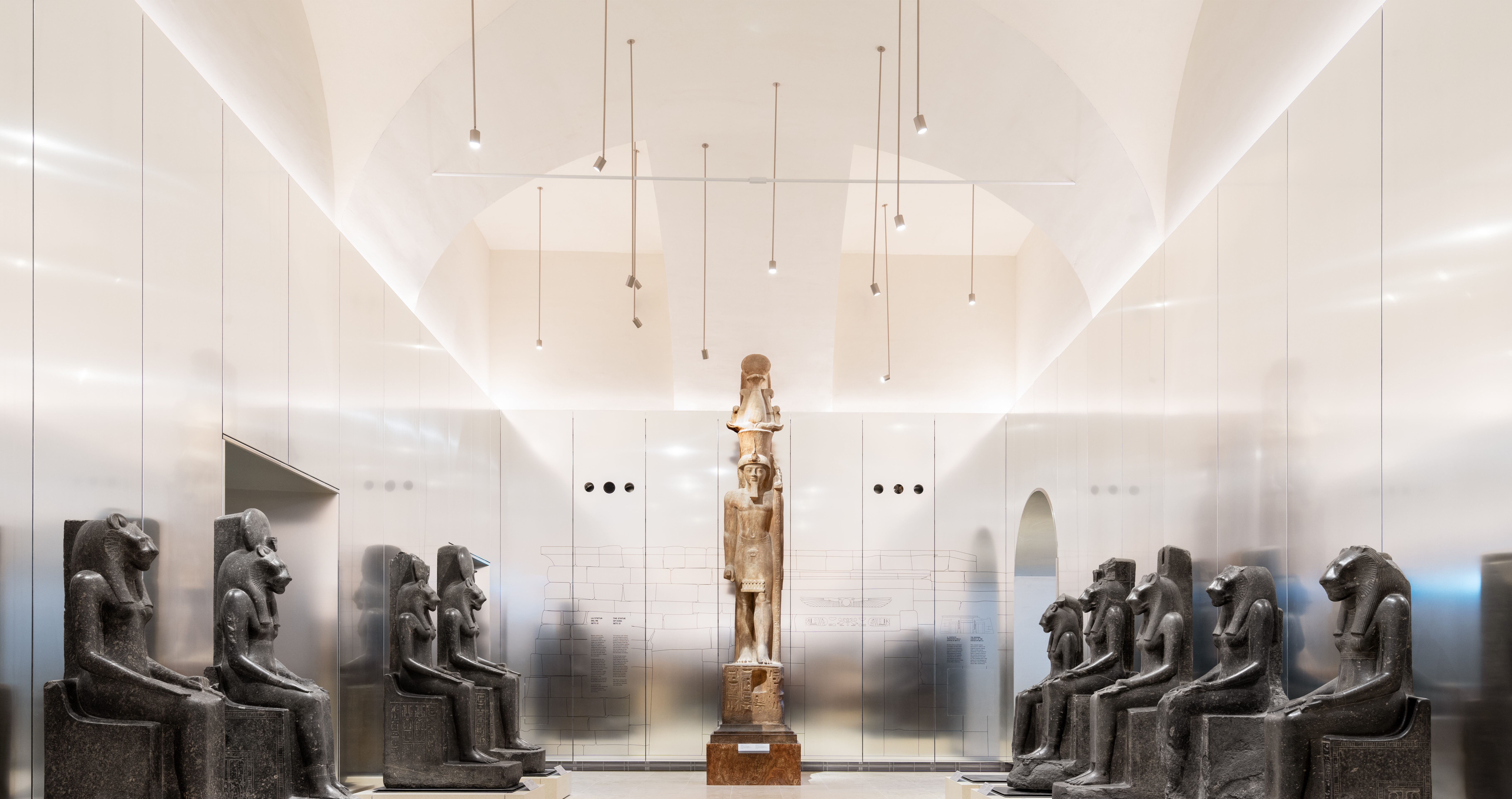 The new Gallery of the Kings at the Egyptian Museum in Turin offers an extraordinary journey into Ancient Egypt! This hall represents an important step towards the modernization and enhancement of Egyptian cultural heritage. We are proud to have designed and produced lighting products that highlight the beauty of the artifacts in the Gallery of the Kings, specifically our Focus Ø 75 mm projectors, customized at the request of the designer, in a Tunable White version to adjust the light temperature. The finish is champagne gold. This solution creates an atmosphere that pays homage to the magnificence of the displayed works. The combination of warm, directional light emphasizes artistic details, transforming the visitor's experience into an unforgettable moment. Visit our website to discover how light can bring your projects to life.