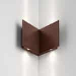 Apparecchio per angolo interno, bi-emissione per illuminazione d’accento. Gruppo ottico completo di sorgenti LED professionali, completi di alimentatore. Versione ad angolo interno 90° con corpo in metallo finitura verniciata. Grado di protezione IP40.