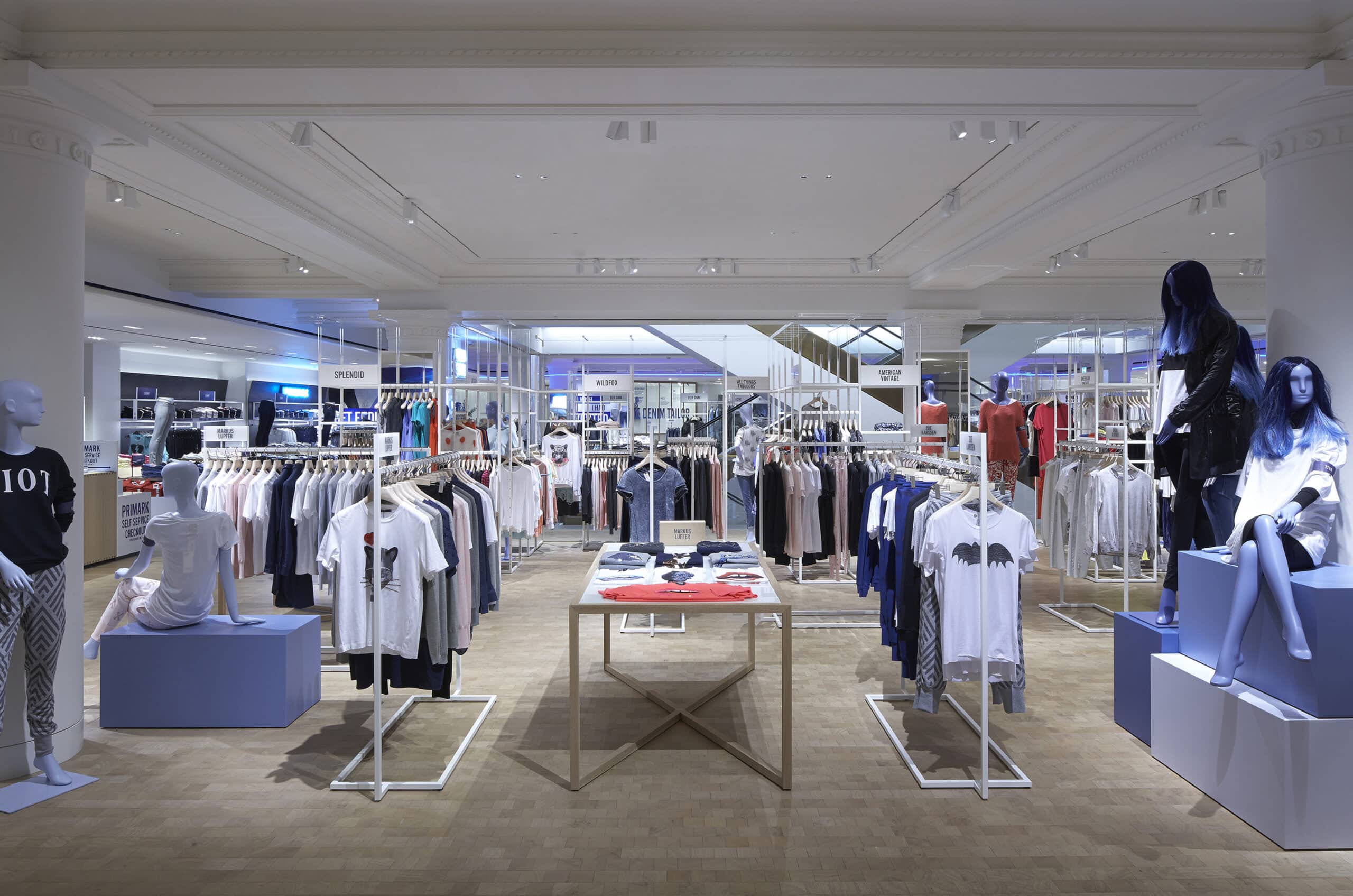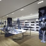 Una linea di luce blu viaggia dai cartelli d'ingresso attraverso il soffitto, guidando i clienti all'interno del reparto e fino all'area Fit nella parte posteriore [...]