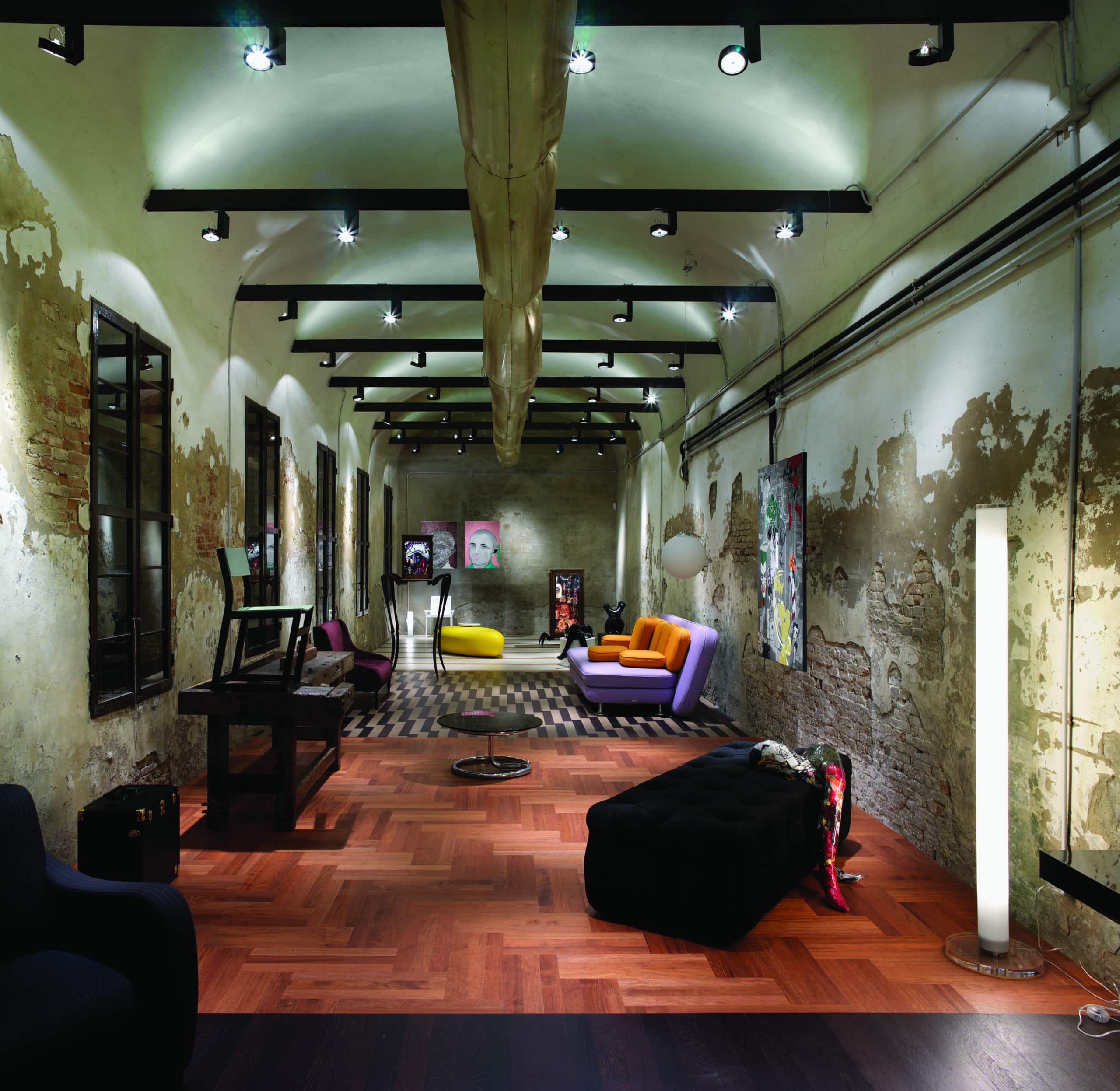L’azienda Gazzotti, produttrice di parquet dal 1910 ha allestito nella propria villa storica Villa Beccadelli in provincia di Bologna, uno spazio espositivo “sui generis” destinato a designers e ai progettisti in cui trovano spazio sette ambientazioni dove il parquet è impreziosito da una cornice di prestigiosi oggetti di design, scenografici arredi vintage e opere d’arte a formare un unico percorso espositivo. I tiranti in ferro del soffitto sono stati mascherati, ma non nascosti dai profili FILEH nella versione Track System nel colore OSSIDATO BRUNO sui quali sono stati montati i fari della serie PRO IN con adattatore euro standard e ottiche in alluminio metallizzato ad alta efficienza che mettono in risalto, oltre ai bellissimi parquet, le opere e gli oggetti esposti e le parete volutamente lasciate come il tempo e l’incuria le avevano rovinate. Le lampade da terra TUTTASCENA disegnate dall’arch. Andrea Trebbi sono esposte come opere d’arte e si designano in tutta la loro purezza stilistica.