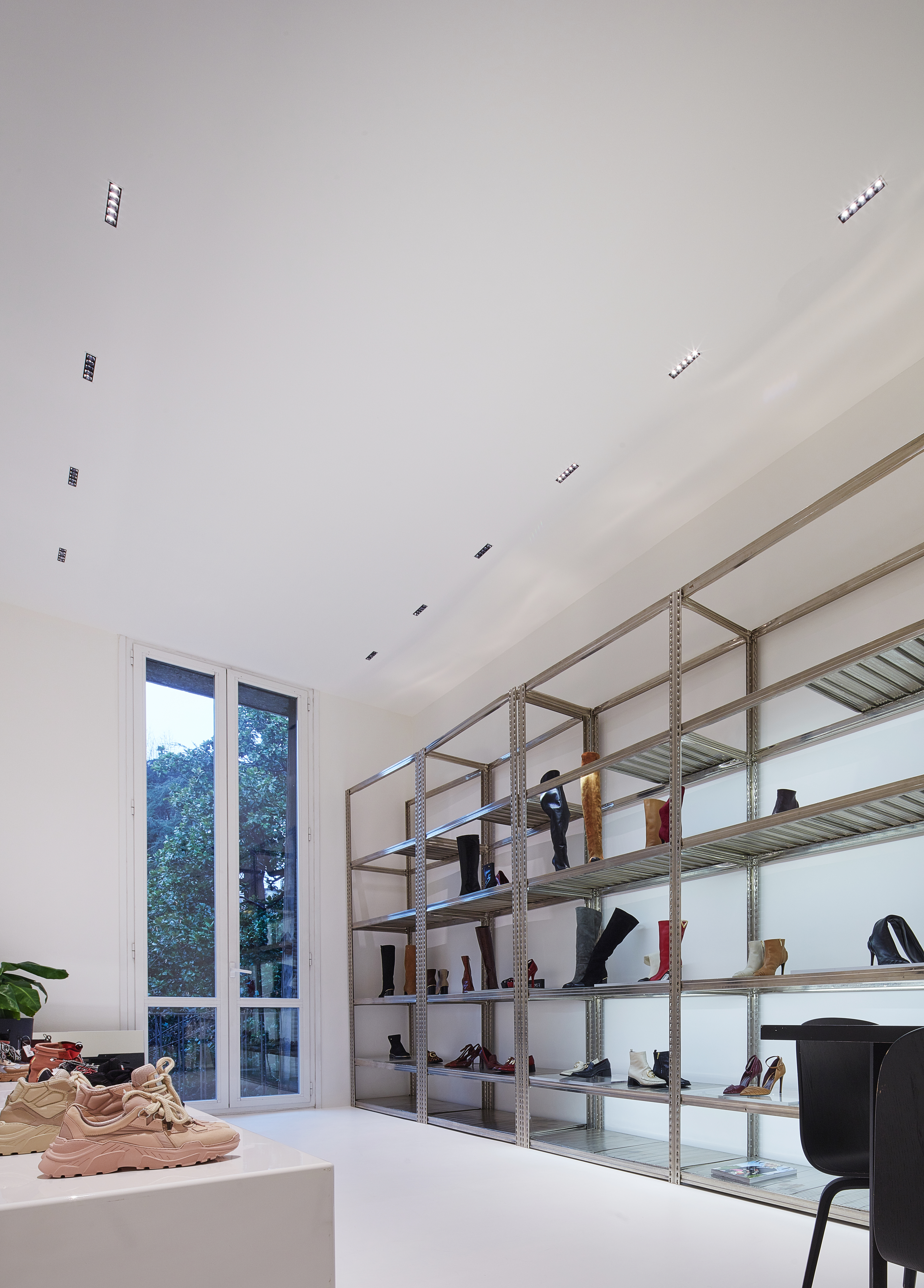 Progetto caratterizzato da spazi moderni, versatili, toni chiari, design neutro. Situato nel cuore di Milano, lo showroom Massimo Bonini è unico, completamente dedicato e specializzato nella PR e distribuzione di importanti brand riconosciuti sulla scena fashion mondiale.