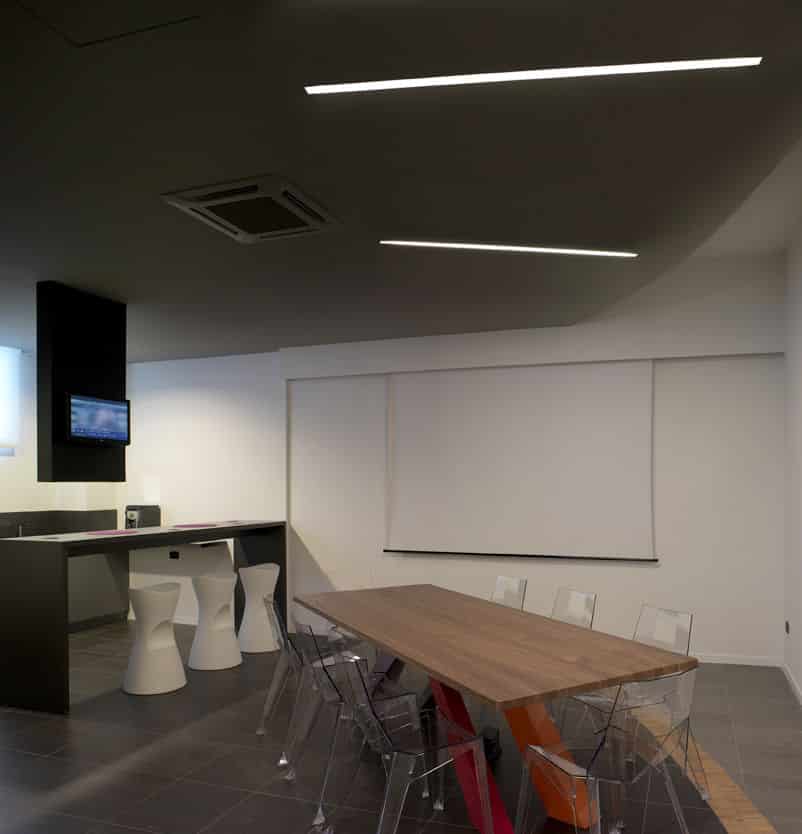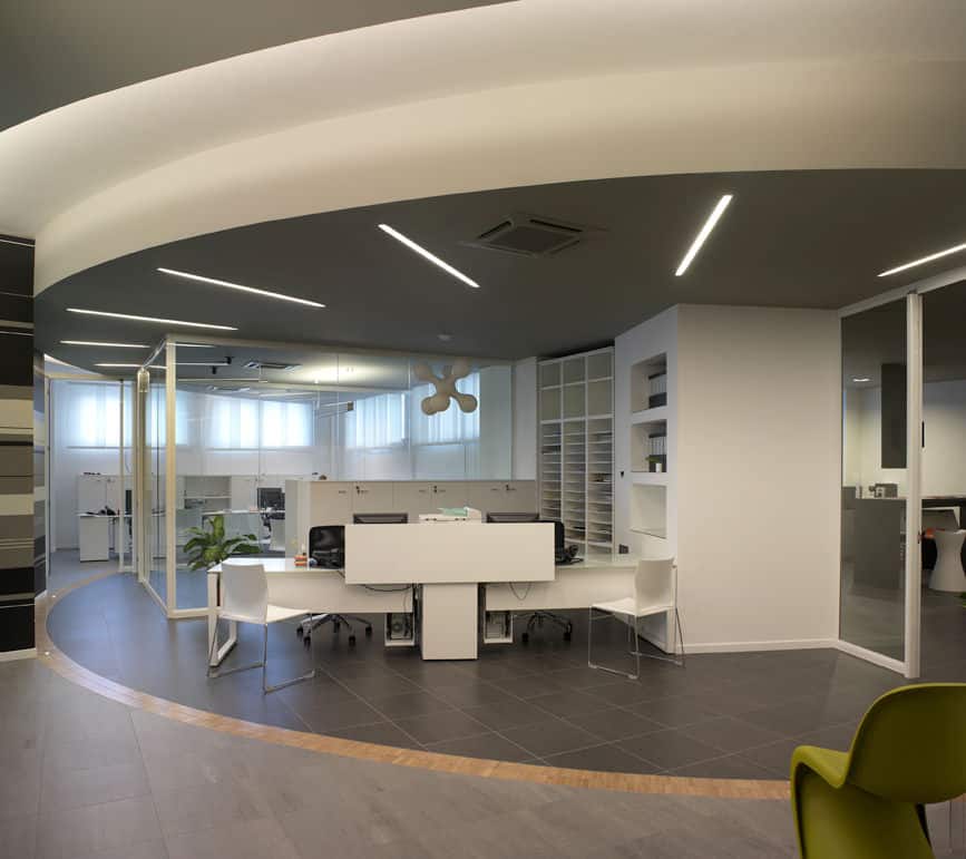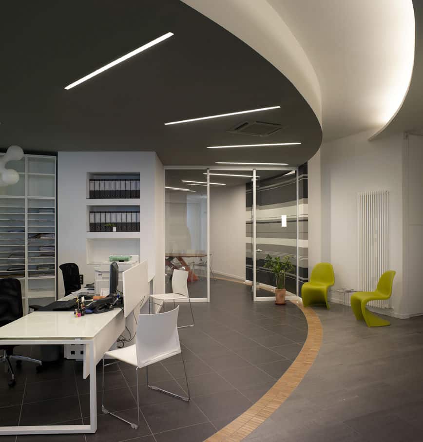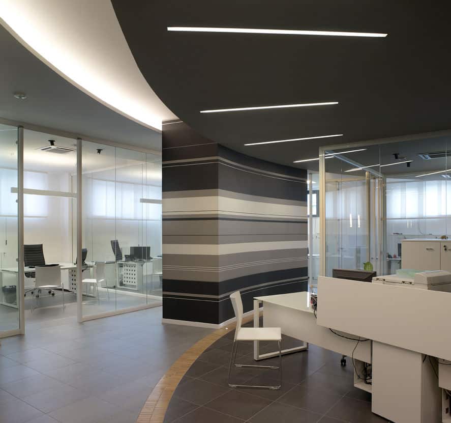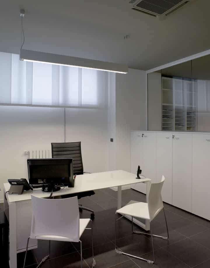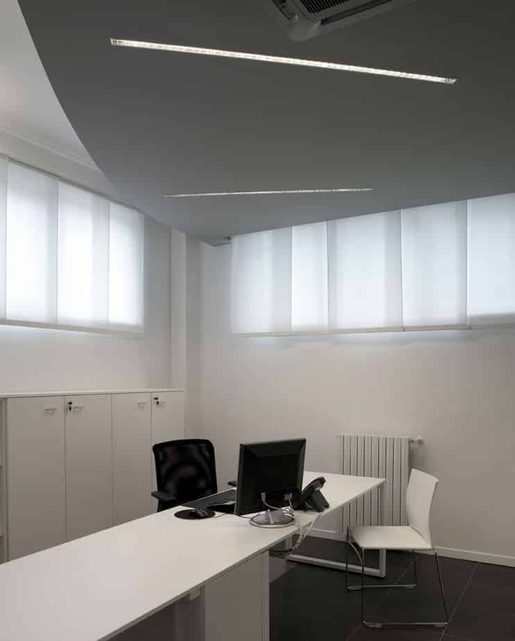 Per gli studi della Dipa e Associati, società che si occupa di infortunistica stradale, l’architetto Luca Mancini ha deciso di dare corpo a una serie di spazi e volumi alternando i colori bianco e nero con inserimenti di cristallo trasparente. Per illuminare sono stati scelti i prodotti della seire MINIFILE di soli 32mm di larghezza nel colore nero per un inserimento di non visibilità nel soffitto anch’esso nero. Solo sottili linee di luce disposte ad arte sottolineano i percorsi mentre i FILE 2H sospesi danno luce diretta e indiretta nelle zone di lavoro; effetti di piacevole contrasto dei bianchi e dei neri in un ambiente razionale ed accogliente allo stesso tempo.